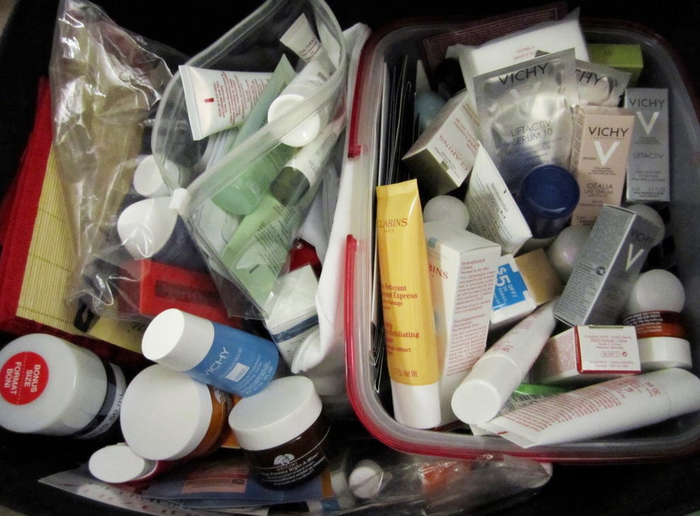 As a result of frequenting numerous cosmetics counters (and befriending many of the sales associates) over the years, I have amassed a hoard of gift with purchases (gwp), cosmetics samples, and Sephora VIB points redemption items; everything from face creams, to makeup removers, to mini lipsticks and mini mascaras.