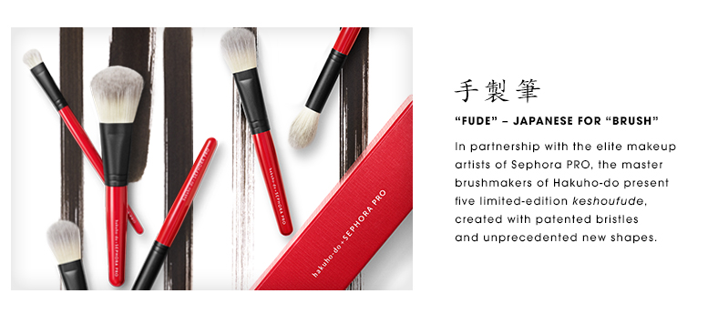 Since this is a collaboration between famed Japanese brush brand Hakuhodo (side note: not sure why Sephora hyphenated “Hakuho-do”? Hakuhodo themselves don’t hyphenate) and Sephora, the styling pays homage to the source.